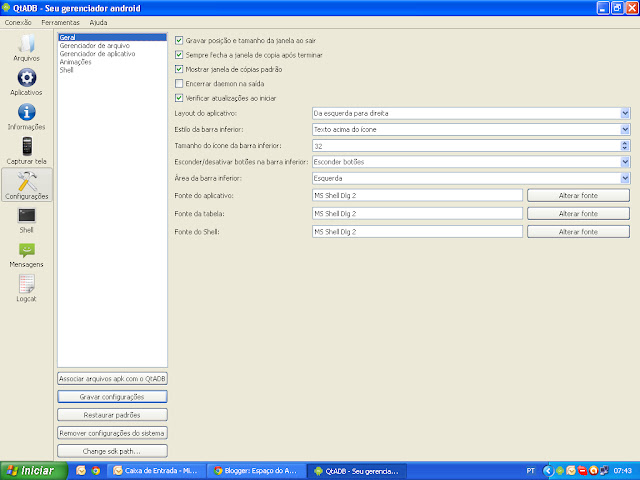 Aqui você encontra todas as configurações para o programa e até deixar com suas preferências.