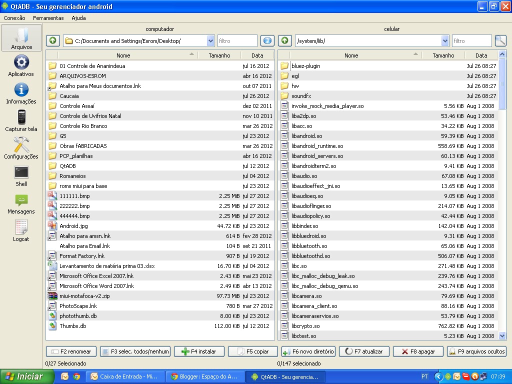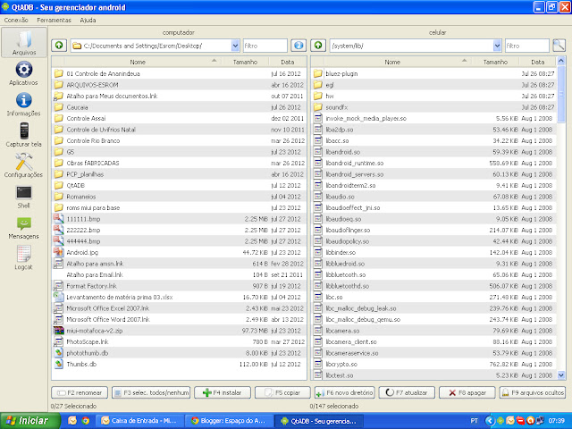 Aqui é onde mostra todos os arquivos de uma determinada pasta ou área de seu computador do lado esquerdo e do lado direito mostra uma determinada pasta ou área do seu Android.